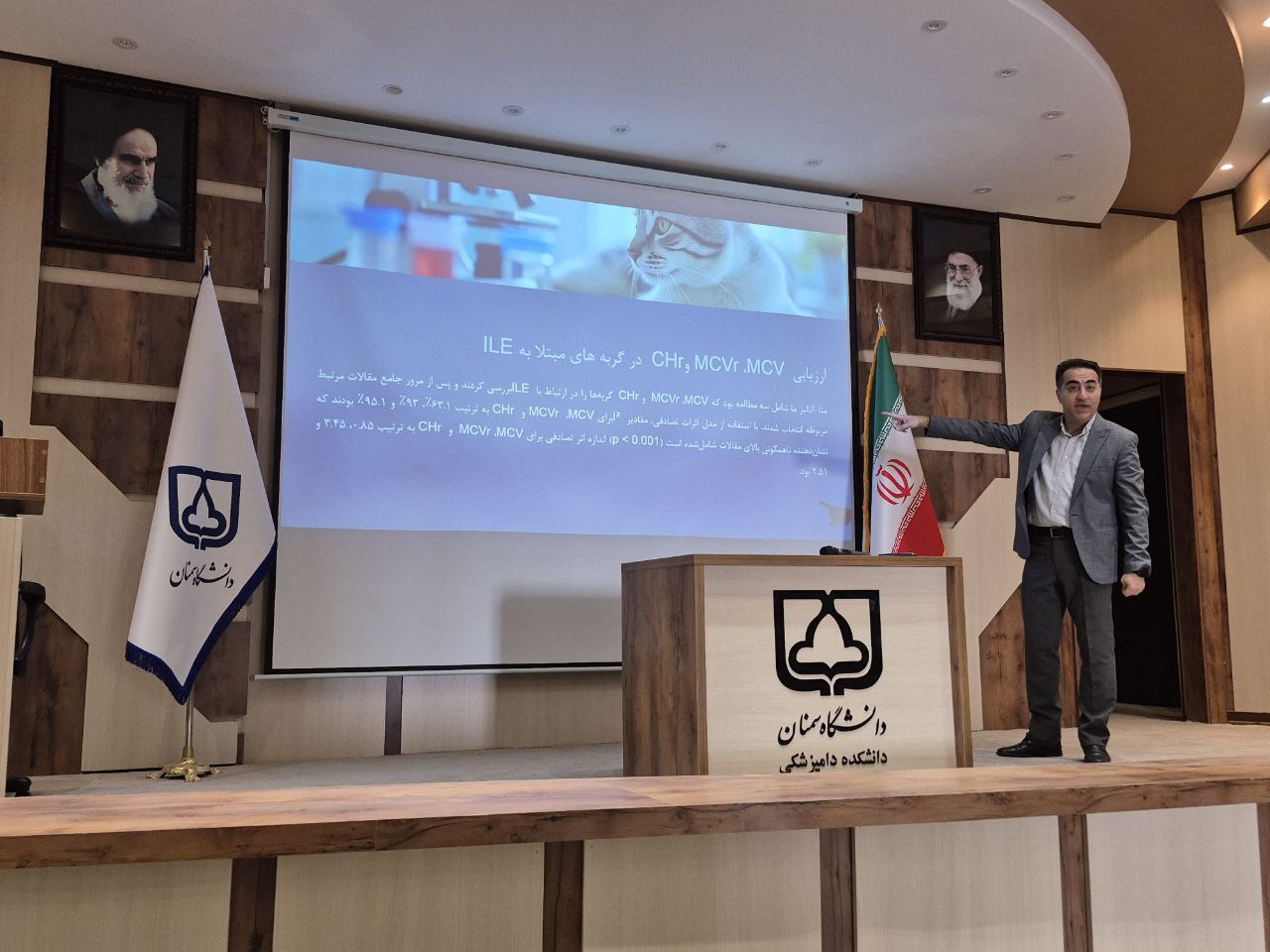 گزارش برگزاری سخنرانی علمی جناب آقای دکتر احمدی همدانی با موضوع بررسی محتوای هموگلوبین و میانگین حجم رتیکولوسیتی در سگ ها و گربه های مبتلا به فقر آهن